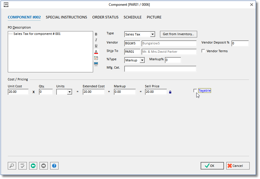 Enter the desired quantity and price if you know it. Attack your tax rate today! Sep 22, 2017 · go to the po tab. You will add this like any other component is added. Follow the steps to finish and select done.